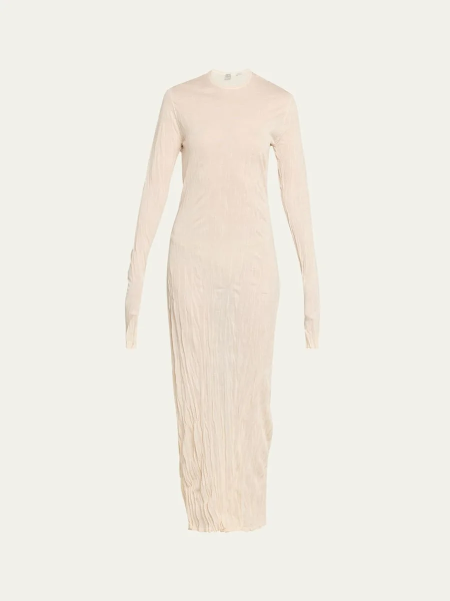 With a slim fit and gathered long sleeves, this Toteme maxi dress redefines the classic column silhouette through rich, rippled fabric. Crew neckline Long sleeves Full length Column silhouette Slipover style Viscose/polyester Hand wash or dry clean Imported SIZE amp; FITModel measurements: 5'10" tall Model is wearing a US size 4/Small