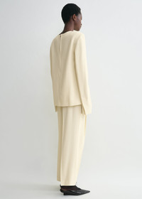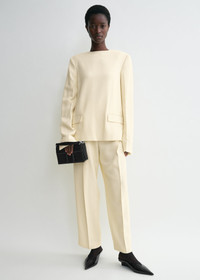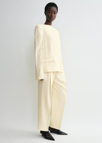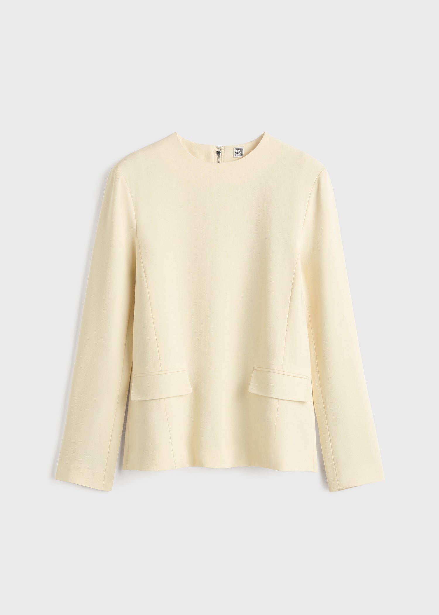 TOTEME evening top infused with an air of effortless tailoring. Made from double crepe with a fluid, mid-weight hand, it is simply accented with two convenient flap pockets and fastens with a metal back zipper. Wear it with coordinating trousers to a business meeting. Details & Fit - Butter - Shoulder pads - Functional flap pockets - Metallic back zipper, satin lining - 77% viscose, 23% virgin wool; lining: 100% viscose - Dry clean - Style number 251-WRT0459-FB0335 - The model is 176cm/59 tall and wears a size 36 - True to size