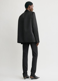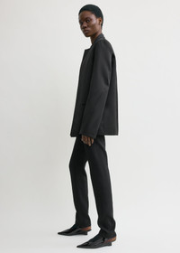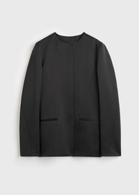 Blazer designed as a minimalist take on classic dinner jackets. It is crafted from lustrous duchess satin with a crew neckline and slightly rounded sleeves with slanted seams. Wear it with evening pieces. Details & Fit - Black - Open front - Jet pockets - Satin lining, internal pocket - 100% polyester recycled - Dry clean - Style number 254-WRO0239-FB0473 - The model is 180cm/5'11 tall and wears a size 36 - Architectural fit