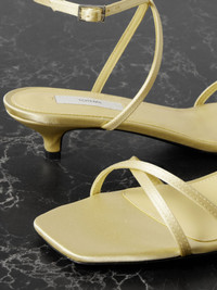 TOTEME’s sandals nod to '90s styles with their minimal design and low kitten heels. They’ve been made in Italy from satin and have slim straps and chic square toes. Wear yours with everything from satin dresses to denim. Details & Care - Heel measures approximately 35mm/ 1.5 inches - Pastel-yellow satin - Buckle-fastening ankle strap