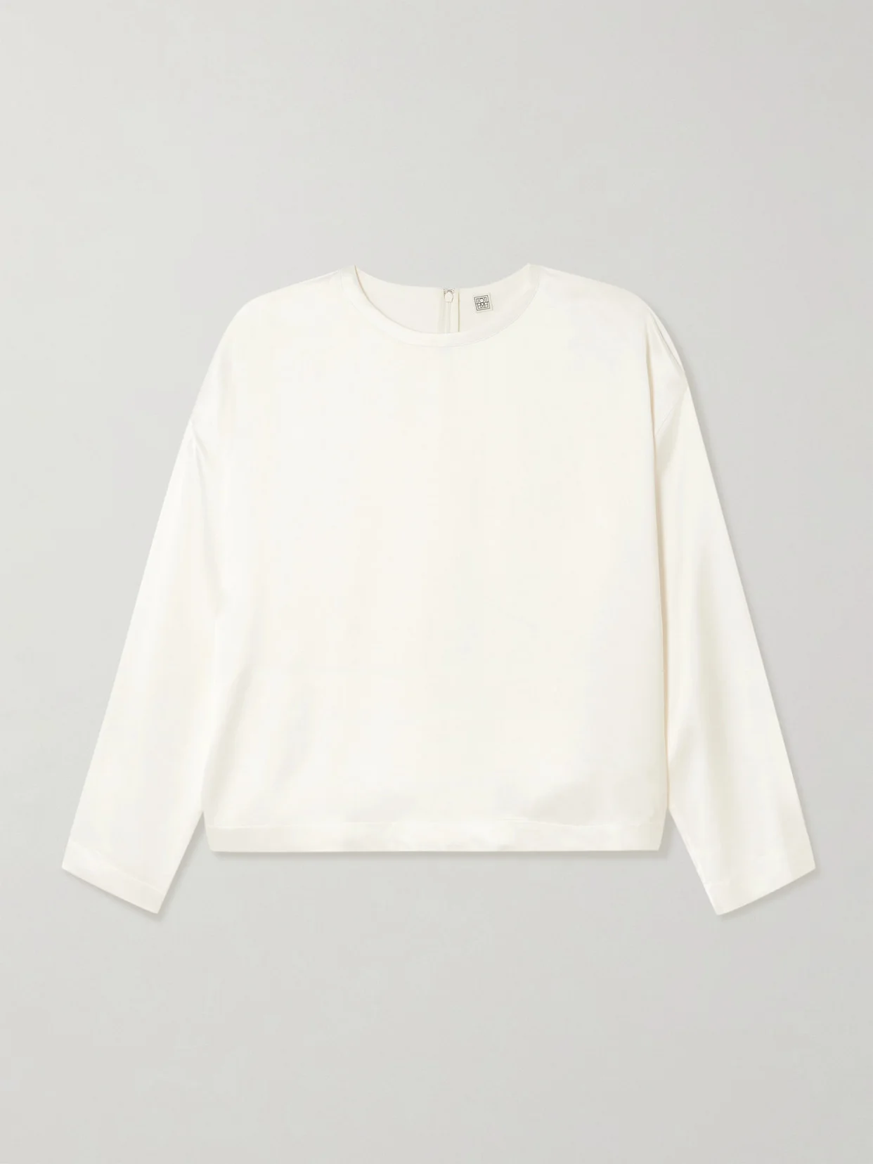 TOTEME's designs often reveal the beauty in simplicity. This top is made from smooth satin in a loose shape with minimal detailing. Layer a bold silver or gold cuff over one sleeve.