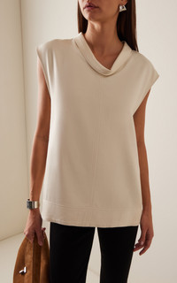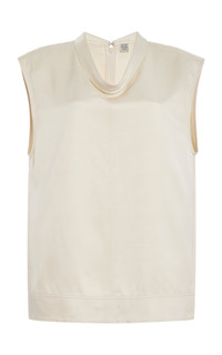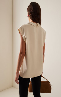 With its signature clean lines and minimalist style, Stockholm-based Toteme is the quintessential Scandi-cool. Elin Kling designs each collection as a modern uniform, looking to vintage pieces for inspiration and giving its cult following a dress code for every day. Cut from structured satin, this high-neck top is designed for a boxy, relaxed fit. PRODUCT DETAILS - Spring/Summer '25 - Concealed zip fastening along back - Composition: 100% Viscose - Designer color: Ecru - Dry clean - Imported SIZE & FIT - Our model is wearing a size FR 34 - Model is 5'11" with a 32" bust, 25" waist, and 35.5" hip - Designed for a relaxed fit