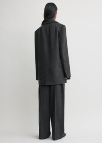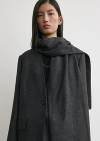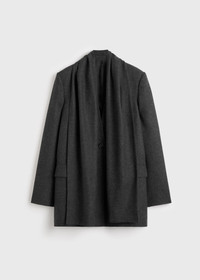 Blazer featuring a sophisticated scarf, a signature accent in our pieces. It is tailored from extra soft and airy melange flannel to a long, straight silhouette with padded shoulders, flap pockets and a single-buttoned front. Inside, the lined interior has an internal pocket. Complete a relaxed suit with the matching trousers. Details & Fit - Charcoal - Detachable scarf, concealed buttons - Button front, flap pockets - Satin lining, internal pocket - 70% viscose, 30% RWS wool; lining: 100% viscose - Dry clean - Style number 254-WRZ0060-FB0472 - The model is 180cm/5'11 tall and wears a size 36 - Straight fit