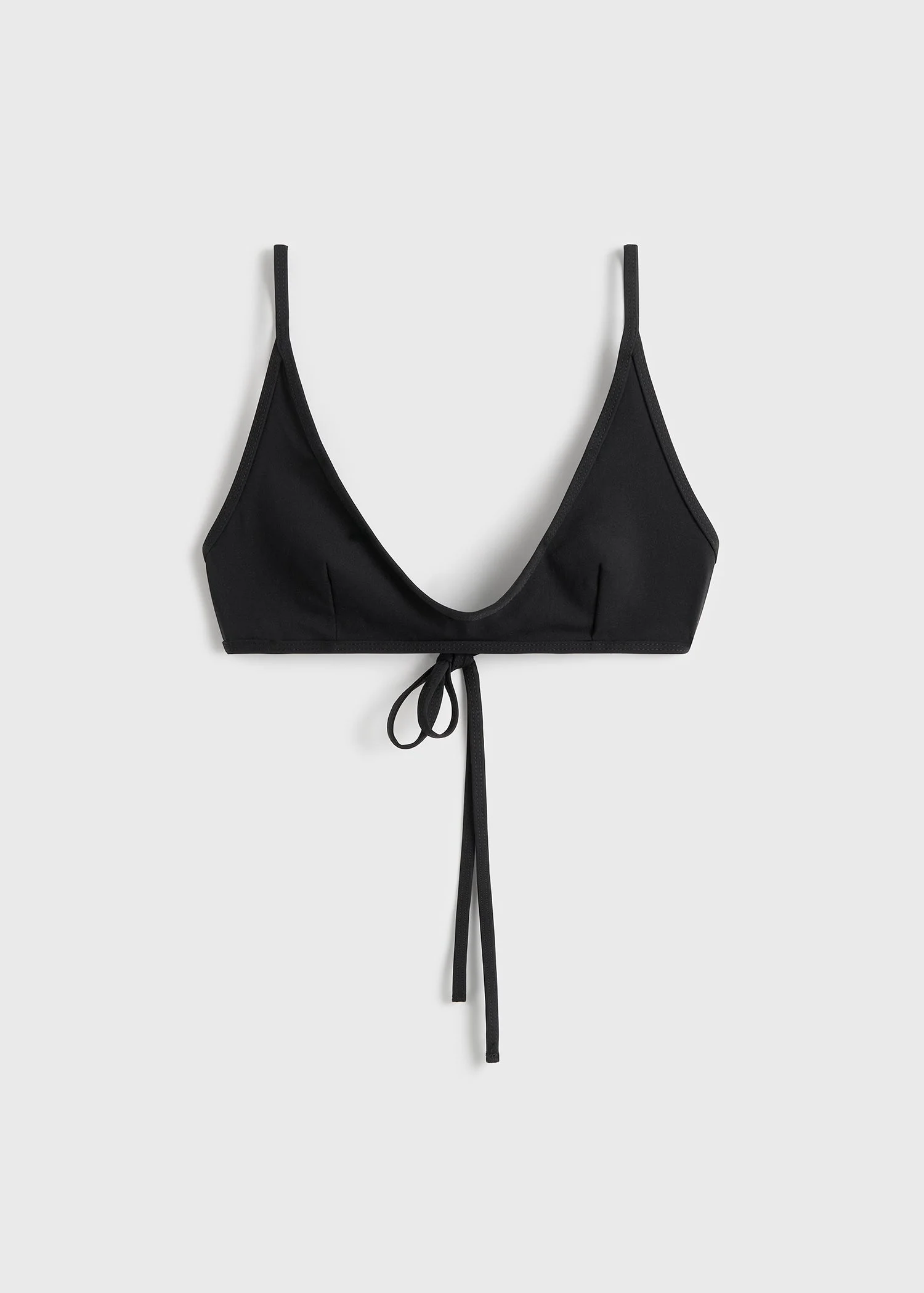 Swim top shaped to a sleek silhouette with a scoop neckline. Made from fully lined stretch jersey, it features thin shoulder straps and a tie-back detail at the braline for a sporty finish. Complete the look with the matching bottom. Details - Black - Adjustable tie at the back - Shoulder strap sliders at the back - Full lining - 43% recycled polyamide, 29% polyamide, 28% elastane - 30°C machine wash - Style number 262-WRW0058-FB0097 Fit information - The model is 180cm/5’11” tall and wears a size S Origin & Certificates - This piece contains recycled polyamide derived from plastic waste - Product contains at least 43% recycled content - Releases microplastics into the environment during washing - Made in Portugal - Manufacturer: Manuel Lima Teixeira, Unipessoal Lda - Material knit in Italy; dyed in Italy