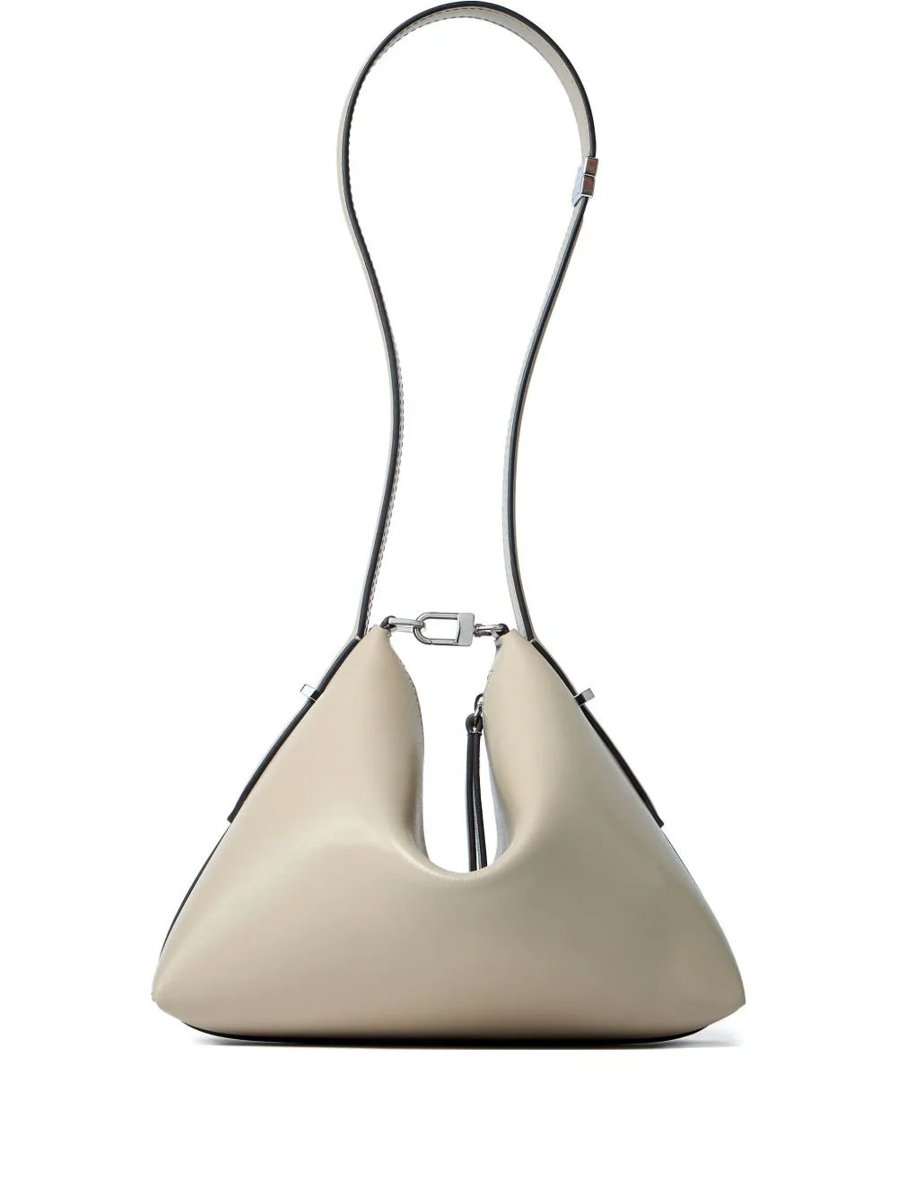 Bevel clasp shoulder bag Highlights - Beige - Smooth grain finish - Adjustable shoulder strap - Top clasp fastening - Top zip fastening - One main compartment Made in Italy Composition Outer: Calf Leather 100% SIZE & FIT Measurement HEIGHT 6.69 in(17 cm) STRAP 9.44 in(24 cm) WIDTH 9.05 in(23 cm)