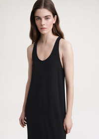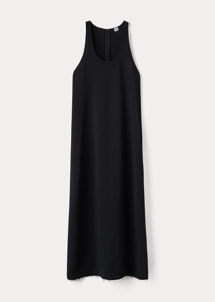 TOTEME dress defined with an ample scoop neck and an A-line silhouette with a raw hem. It's made from heavyweight viscose sablé and can be worn on its own or layered over a fine top or sweater. Let it drape freely or cinch it at the waist with a belt. Details and fit - Black - Low armholes - Raw hem - Concealed back zipper - 100% Viscose - 30°C Machine wash - Style number 233-6033-280 - The model is 176cm/5'9'' tall and wears a size 34 - True to size, A-line silhouette