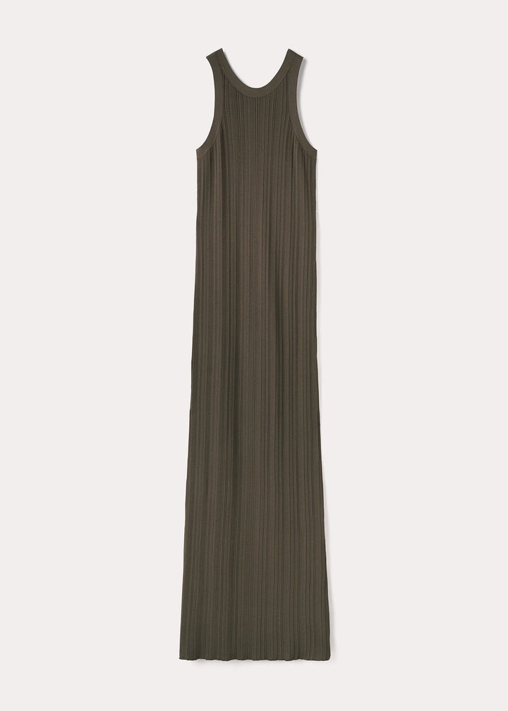 TOTEME dress rib-knitted from viscose and recycled polyamide yarns to a body-hugging silhouette. It has a round neckline and curved armholes that accentuate the shoulders, then falls to ankle-grazing length. Team it with sandals and sneakers over the summer. Details and fit - Faded olive - Slip on - 65% Viscose, 35% recycled polyamide - Cool hand wash - Style number 233-613-755 - The model is 176cm/5'9'' tall and wears a size XS - True to size, slim fit