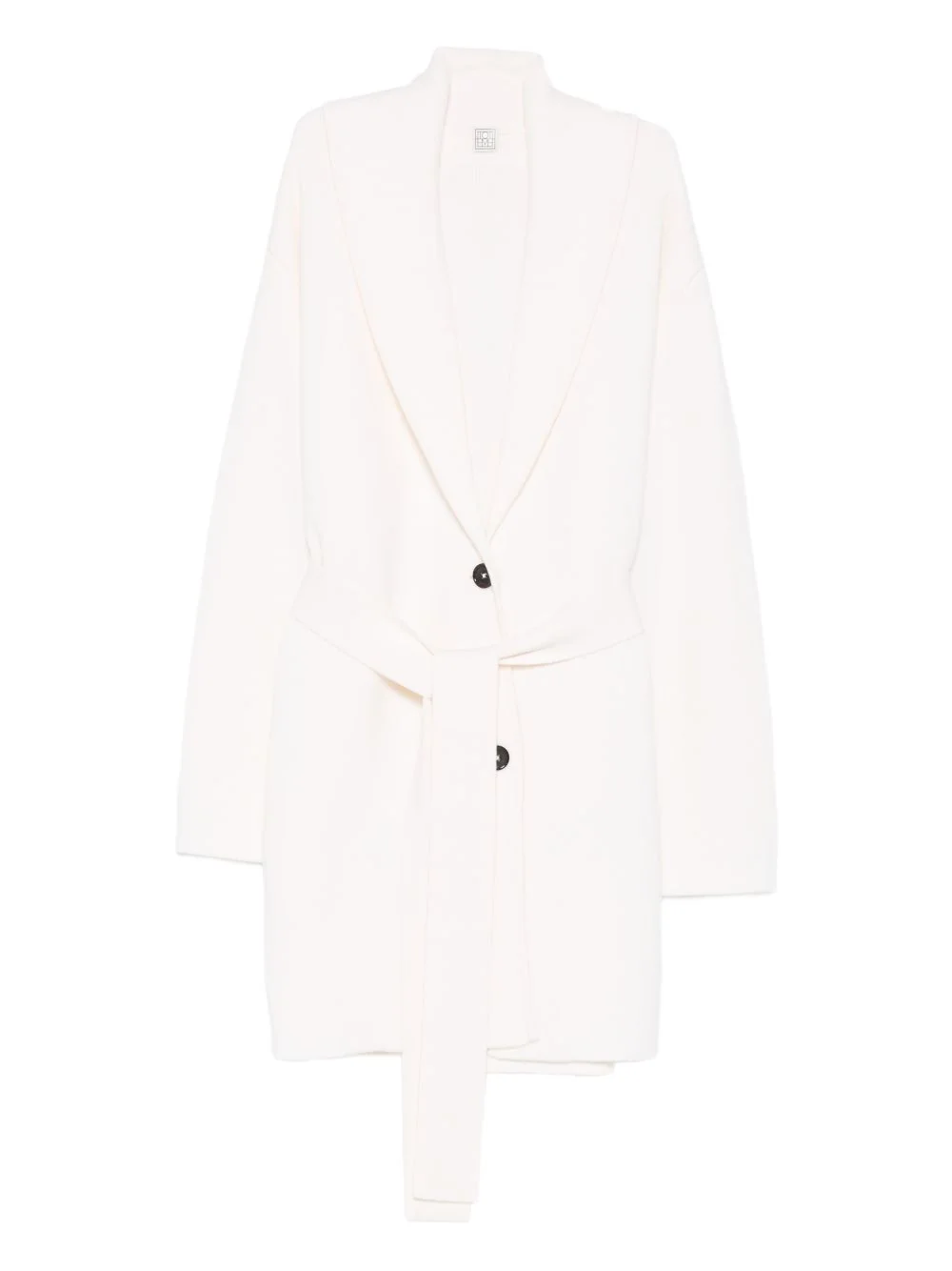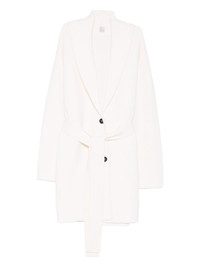 shawl-lapel belted knitted coat Highlights - Off-white - Shawl lapel - Button fastening - Belt - Long sleeves Imported Composition Wool 100% SIZE & FIT Model measurements Height 5 ft 9 in(1.76 m) Bust/Chest 33.85 in(86 cm) Hips 35.43 in(90 cm) Waist 25.59 in(65 cm) Washing instructions Hand Wash