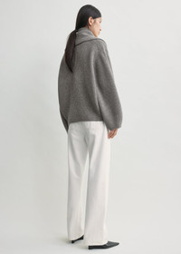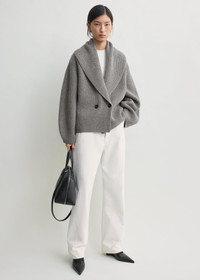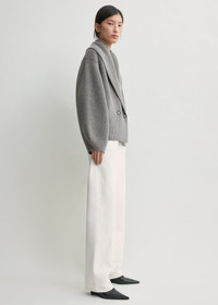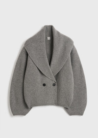 The Shawl-lapel cardigan has wide sleeves with dramatic, rounded proportions. It is knitted from heavyweight, ribbed wool and set with a double-breasted button front. Wear it as a sculptural outerwear piece. Details - Mid grey - Double-breasted button front - 94% RWS Wool, 6% Polyamide - Cool hand wash - Style number 251-WRT4354-YA0239 Fit information - The model is 180cm/5'11” tall and wears a size S - Oversized fit, low armholes Origin & Certificates - Country of origin: China - Main supplier: Hangzhuo Springair Ace Textile Co. Ltd