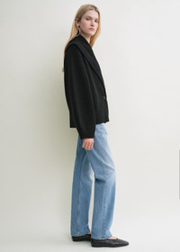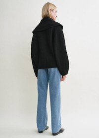 This oversized TOTEME cardigan has curved shawl lapels and wide sleeves with dramatic rounded proportions. It is knitted from a heavyweight, ribbed wool blend and set with a double-breasted front fastened with tonal buttons. Wear it as a sculptural outerwear piece. Details & Fit - Black - Wide armholes and sleeves - Button front - 85% wool RWS, 15% polyamide - Cool hand wash - Style number 251-WRT4354-YA0110 - The model is 178cm/510 tall and wears a size S - Oversized fit