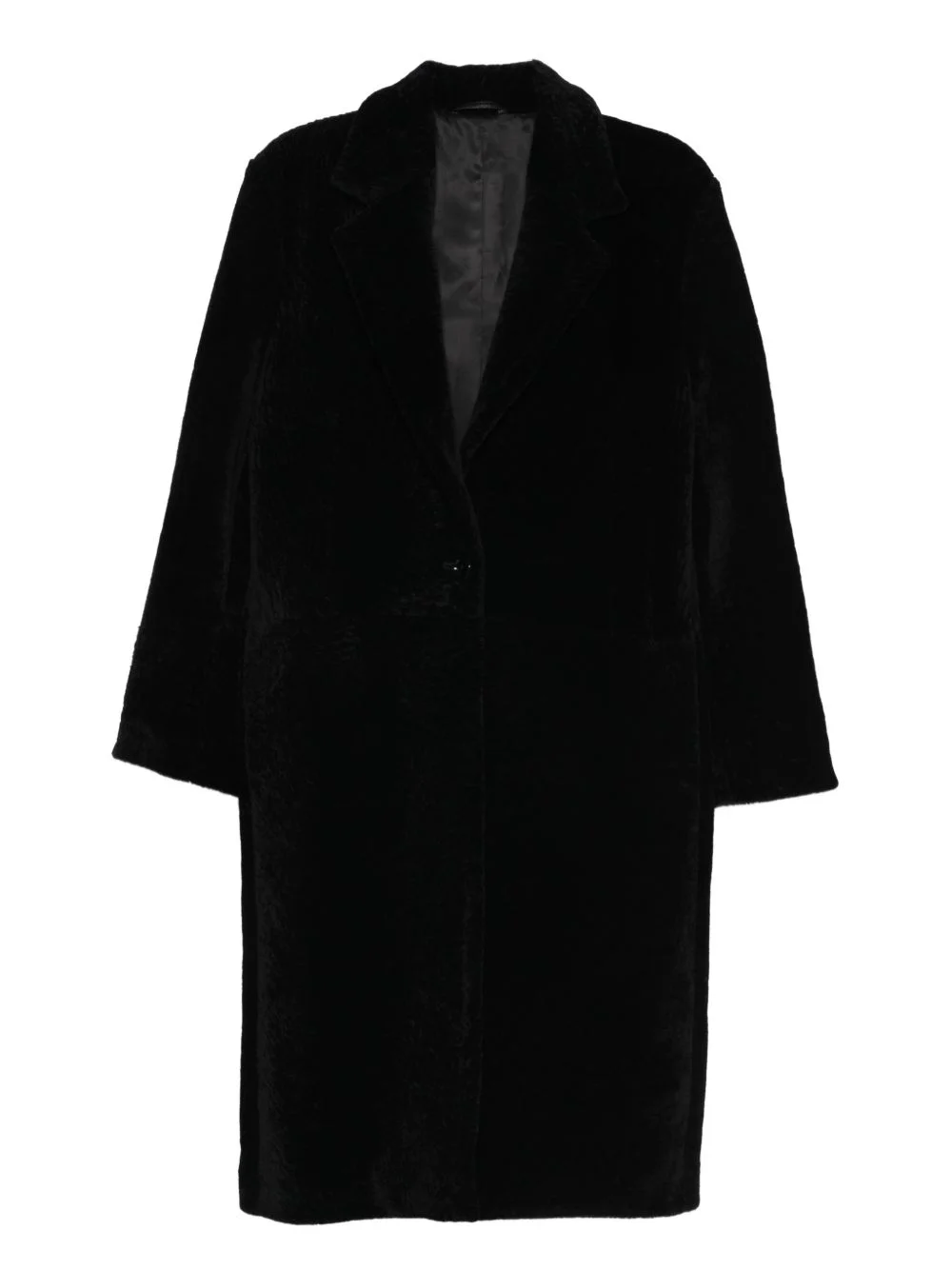 shearling coat Highlights - Black - Lamb shearling - Button fastening - Lapel collar - Long sleeves Imported Composition Lining: Viscose 100% Outer: Lambskin 100% SIZE & FIT Model measurements Height 5 ft 9 in(1.76 m) Bust/Chest 33.85 in(86 cm) Hips 35.43 in(90 cm) Waist 25.59 in(65 cm) Washing instructions Dry Clean Only