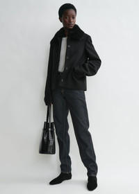 This TOTEME jacket is impeccably crafted from refined felt complemented by a detachable shearling collar with a soft, curly texture. It has a slightly tapered silhouette constructed with precise darts and jet pockets, then complete with satin lining set with an additional pocket. Team it with trousers for a casual dinner. Details & Fit - Black - Detachable shearling collar - Concealed button placket - Jet pockets, internal pocket - 70% wool recycled, 25% polyamide, 5% other fibers; lining: 100% viscose - Specialist clean - Style number 251-WRO0164-FB0005 - The model is 176cm/59 tall and wears a size 36 - True to size, regular fit