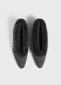 Elongated TOTEME ballerinas revisited in wool double trimmed with soft lamb shearling along the top edge. Made in Italy, they are lined in leather and softly padded at the insole for comfort. Use them to elevate indoor winter looks. Details & Fit - Grey - Shearling trim - Leather lining, insole and sole - 100% wool; trim: 100% lamb shearling; insole: 100% calf leather; sole: 100% cow leather - Care instructions and dust bag included - Style number 251-WAS0183-FB0006 - True to size