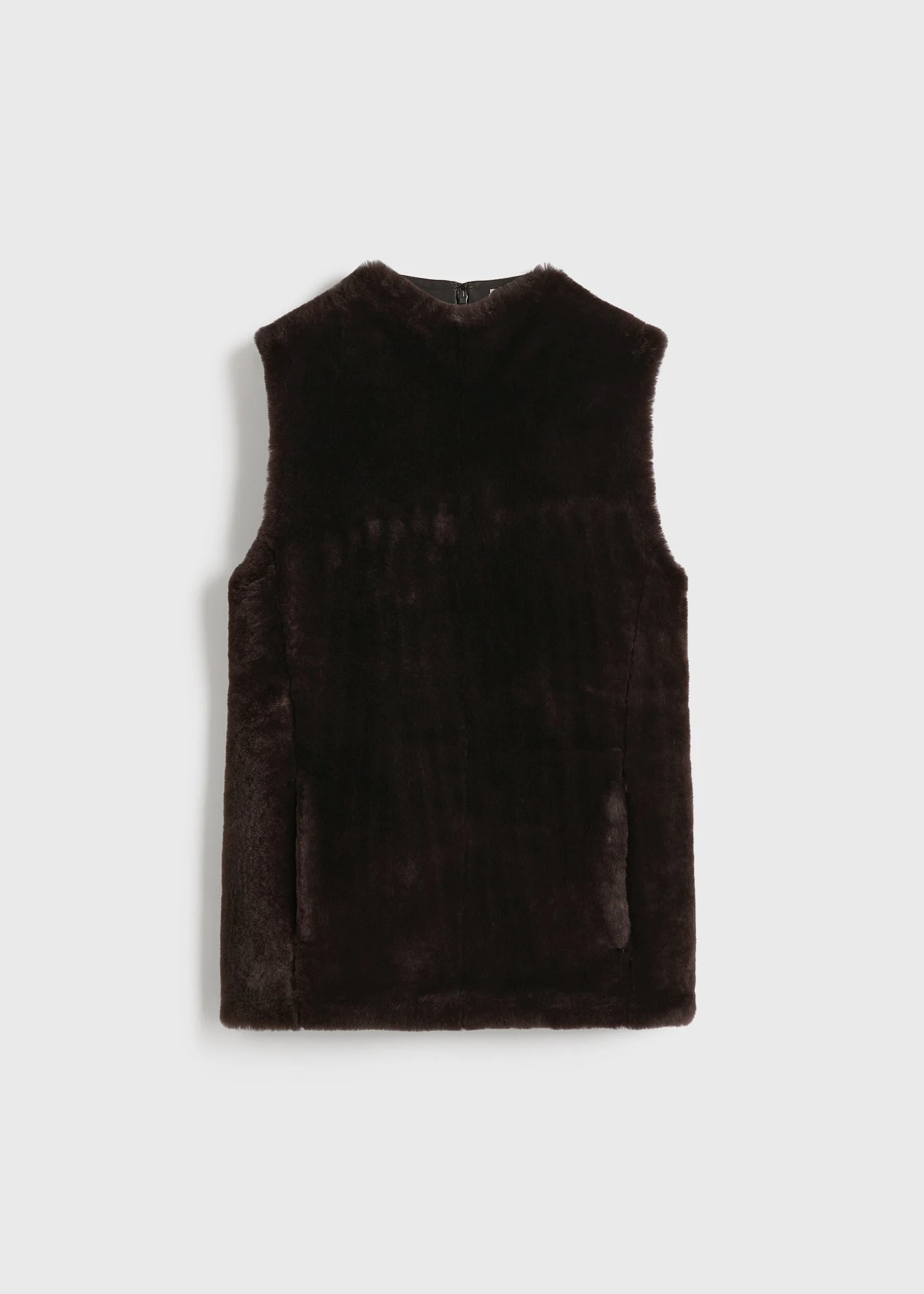 Designer’s note: "This vest top debuted in our Pre Spring 25 collection, and we found it to be a really versatile and timeless styling piece that can easily dress up and down. We like it layered over a long-sleeved dress." Details - Espresso - Shearling front, concealed pockets - Leather back, concealed zipper - Shaved shearling with a soft hand feel - Front: 100% lamb leather; back: 100% lamb leather - Specialist clean - Style number 251-WRT0419-LE0099 Fit information - The model is 180cm/5'11” tall and wears a size 36 - Slim fit, hip-grazing hem Origin & Certificates - Country of origin: Turkey - Manufacturer: Lider Deri Urunleri San. Ve Tic. A.S