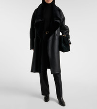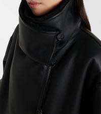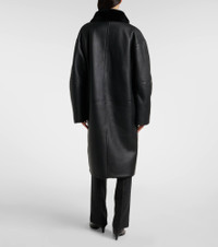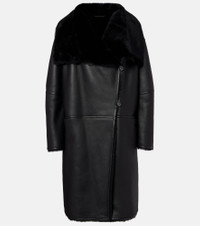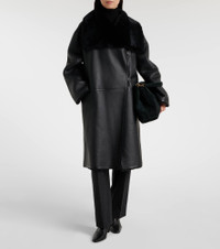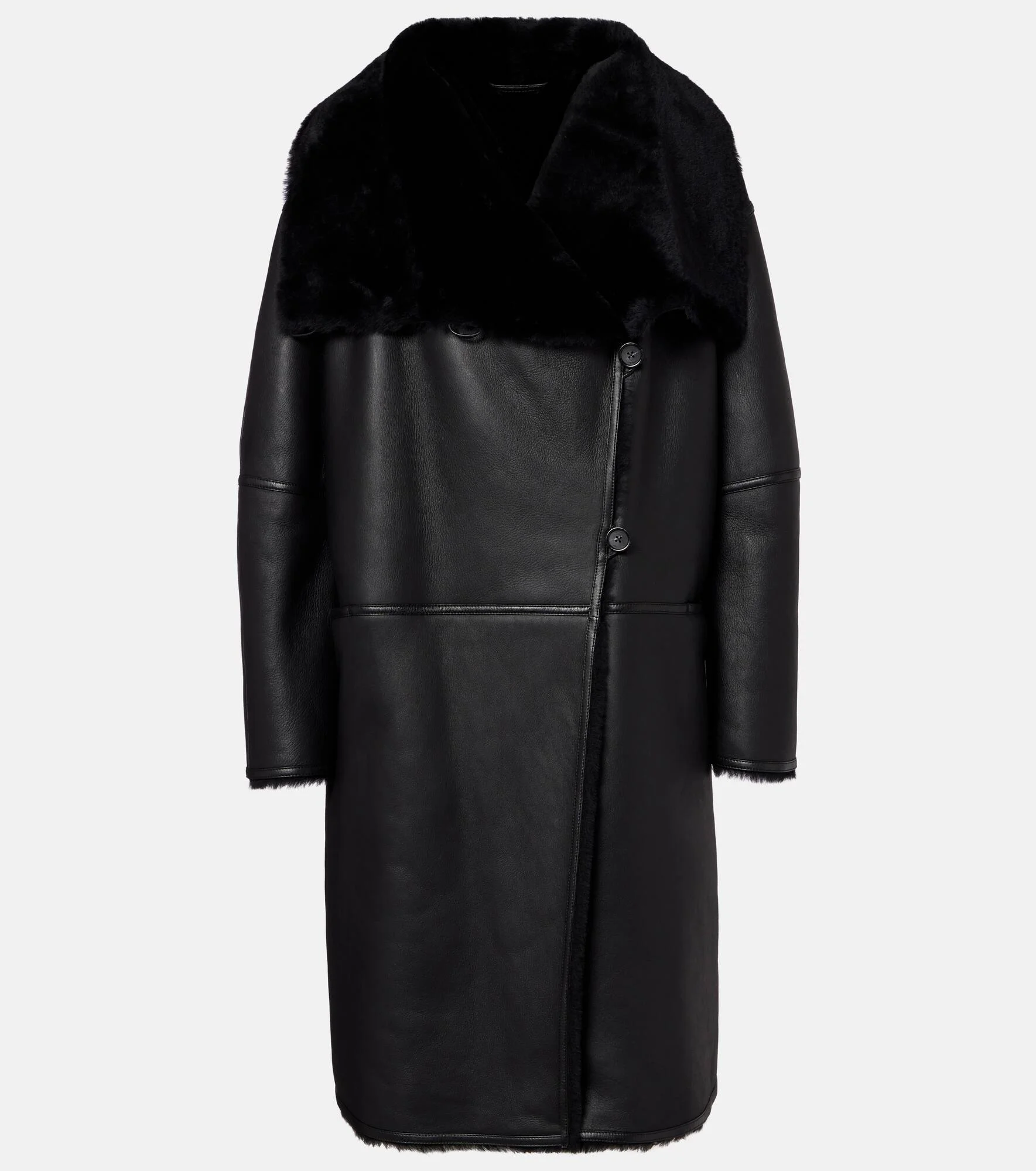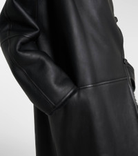 Define your dress code with styles from Toteme, a Stockholm-based brand dedicated to creating a modern uniform. This coat is crafted from smooth leather and lined with cozy shearling which can be converted into a high neck. Product Details - Material: 100% lamb leather - Care instructions: specialist clean - Made in Turkey - Color: black - Designer color name: Black - Item color: black - Lining: 100% shearling - Pockets: welt pockets - Closure: buttoned front - Item number: P01136681 Size & Fit - True to size - For a closer fit, we recommend taking one size down - Dropped shoulders - Oversized - Non-stretchy fabric - Falls below the hip - The model seen in the picture is 178cm-5'10" and wearing a size DE 34
