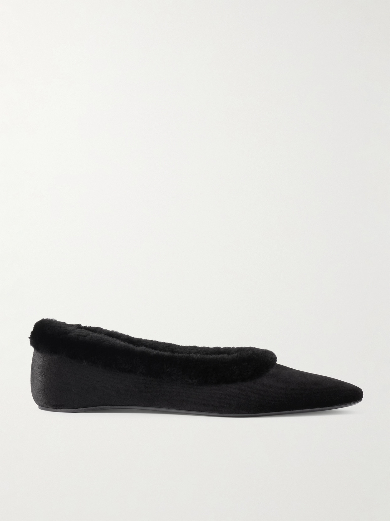 Shearling-trimmed Velvet Ballet Flats