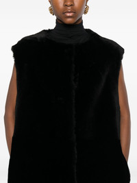 shearling vest Highlights - Black - Shearling texture - Sleeveless - Panelled design - Straight hem - Concealed fastening Imported Composition Lamb Fur 100% SIZE & FIT Model measurements Height 5 ft 8 in(1.73 m) Bust/Chest 29.92 in(76 cm) Hips 33.07 in(84 cm) Waist 23.22 in(59 cm) Washing instructions Read Manufacturer Guidelines