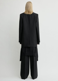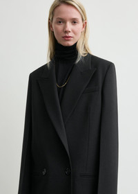 Modern blazer designed to be worn with the lapels as they are or turned up for an element of cocooning. It is crafted from a structured wool blend to a sharp, straight silhouette nodding to classic tailoring. Details & Fit - Black - Buttoned front and cuffs - Three front pockets, internal pocket - Satin lining - 94% wool, 6% polyamide recycled; lining: 100% viscose - Dry clean - Style number 254-WRZ0058-FB0537 - The model is 180cm/5'11 tall and wears a size 36 - Straight fit