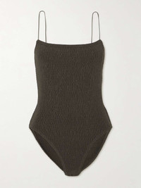EDITORS'NOTES TOTEME's swimsuit is made from shirred stretch fabric that beautifully molds to your figure, offering a close yet flexible fit. It has pin-thin straps and a simple design that suits any destination, from your backyard to tropical locales. SIZE & FIT - Medium brief coverage - S/M/L sizing DETAILS & CARE - Brown stretch-polyamide - Slips on - 80% polyamide, 20% elastane - Dry clean - Lotion, sunscreen, oil and chlorine can cause discoloration of this item; this is not a manufacturing defect. Please follow care instructions to keep your swimwear in the best condition