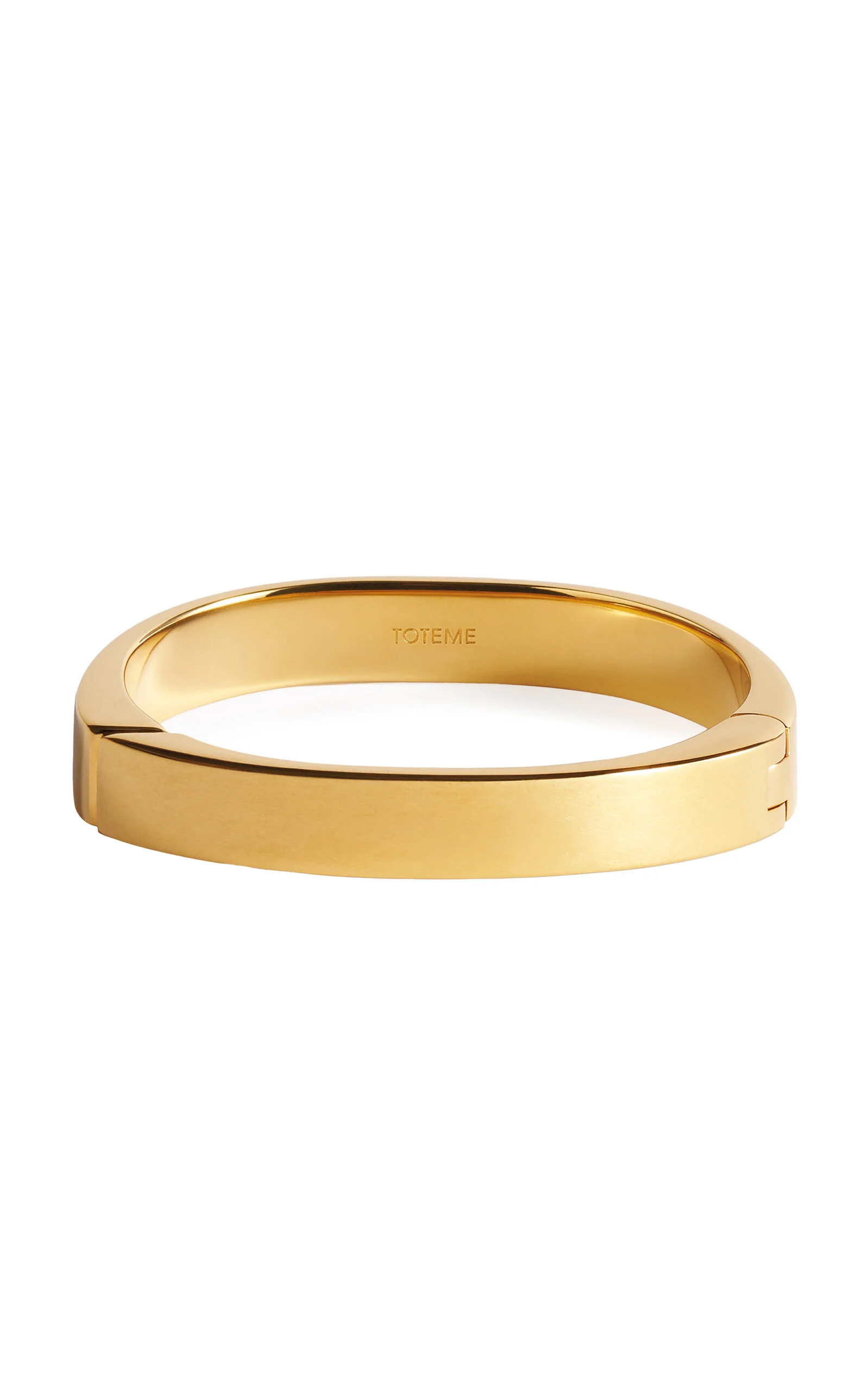 With its signature clean lines and minimalist style, Stockholm-based Toteme is the quintessential Scandi-cool. Elin Kling designs each collection as a modern uniform, looking to vintage pieces for inspiration and giving its cult following a dress code for every day. This bracelet is crafted in Italy from hard-wearing 18K gold-plated brass to a hinged silhouette that makes a satisfying clicking sound as you close it. PRODUCT DETAILS - Hinge fastening - Composition: 100% Brass plated in 0.5 microns of 18K yellow gold and 0.5 microns of palladium - Made in Italy SIZE & FIT - S: T1 (14.5 cm / 5.7"), M: T2 (15 cm / 6.1")
