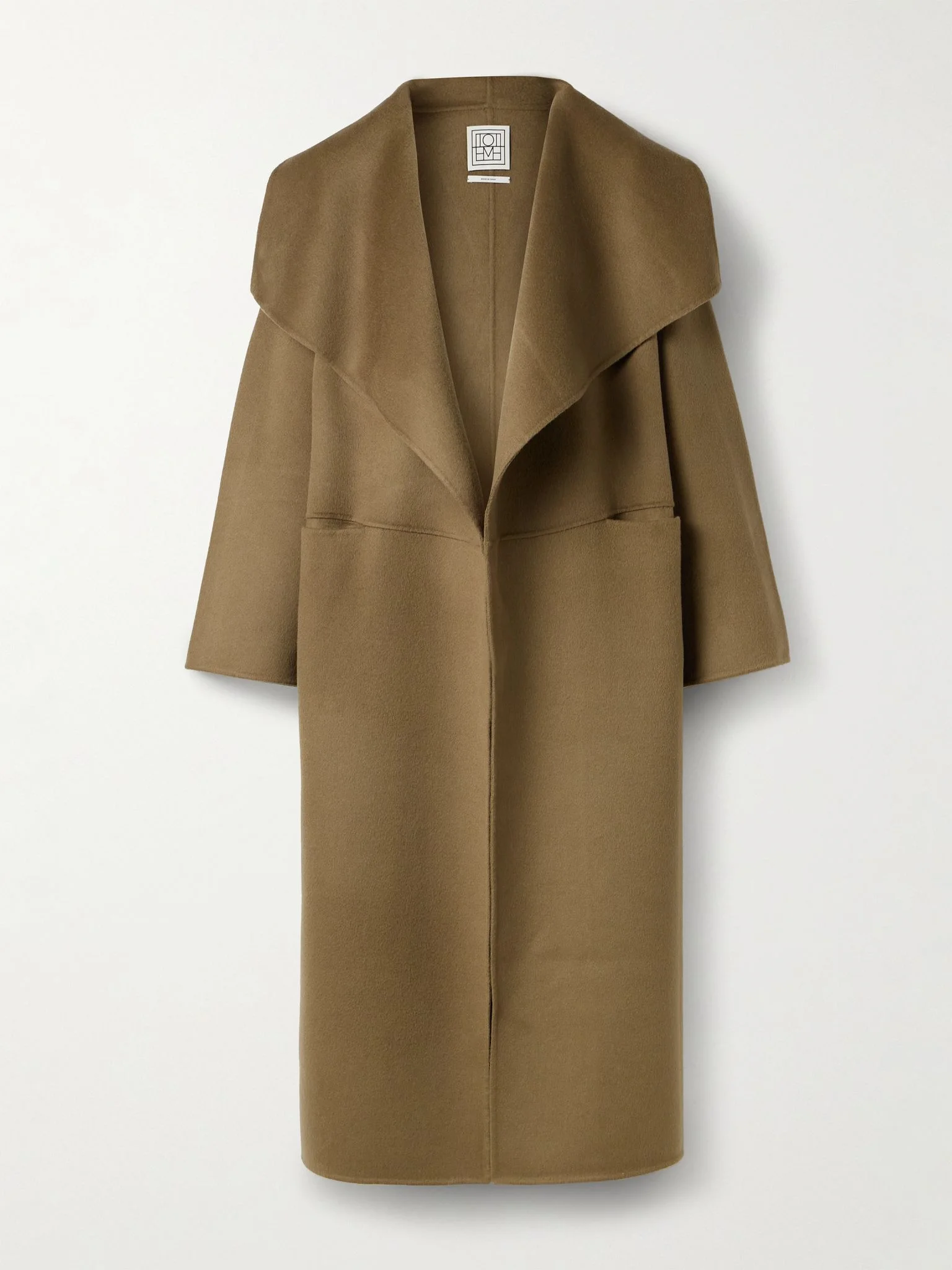 TOTEME's coat is every bit as chic as it is cozy. Made from wool and cashmere-blend felt, it has a relaxed, open-front design with a dramatic shawl collar and on-seam pockets. The neutral 'Hazel' color is so versatile. Size & Fit - Fits true to size, take your normal size - Intended for a slightly loose fit - Mid-weight, non-stretchy fabric - Model is 175cm/ 5'9" and is wearing a size Small Model measurements: - Bust: 79cm/ 31” - Waist: 61cm/ 24” - Hip: 88cm/ 34.5” Details & Care - Light-brown wool and cashmere-blend felt - Slips on - 90% wool, 10% cashmere - Designer color: Hazel
