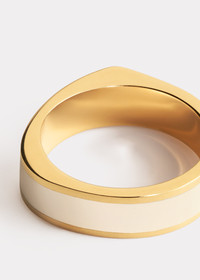 TOTEME Signature ring embodying the graphic codes, classic expression and effortless appeal of our ready-to-wear. It's crafted in Italy from 18kt gold-plated brass and palladium to a strong silhouette that varies in thickness and is tinted with ecru enamel. Details & Fit - Ecru enamel - Stamped hallmarks - 100% Brass plated in 1 micron of 18kt yellow gold and 0.5 microns of palladium - Care instructions and protective packaging included - Style number 241-WJQ2914-AC0006 - Width 5mm - Circumference 50mm, 52mm, or 54mm - Regular fit, French sizing - Our jewelry is handmade any difference in color or finishing is a statement of the manual craftsmanship behind each piece. We use a vibratory tumbling machine to achieve an intentional pre-loved and timeless look