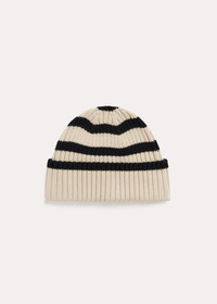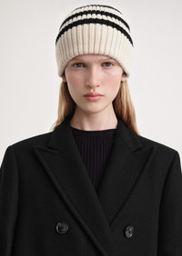 This beanie hat features a light sand and black combination of TOTEME's signature stripes. It's rib-knitted from mid-weight wool and matches the Fingerless wool gloves and Signature stripe turtleneck. Details & Fit - Light sand - Light sand and black stripes - 100% Wool - Cool hand wash - Style number 234-WSAHT186-YA0008