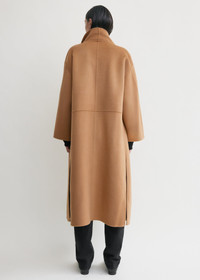 Signature coat crafted from TOTEME's soft double fabric – a blend of responsibly sourced wool and cashmere that's created by hand-stitching two fine layers together to achieve a double-faced finish with clean seams. It has an oversized silhouette with easy-to-style shawl lapels, dropped shoulders, and an open front that makes it perfect for layering, then is complete with inseam pockets and side slits. Details & Fit - Camel - Open front - Inseam pockets - 90% Wool, 10% cashmere - Dry clean - Style number 211-110-717 - The model is 181cm/5'11 tall and wears a size S - Designed for an oversized fit, go down one or two sizes for a neater look