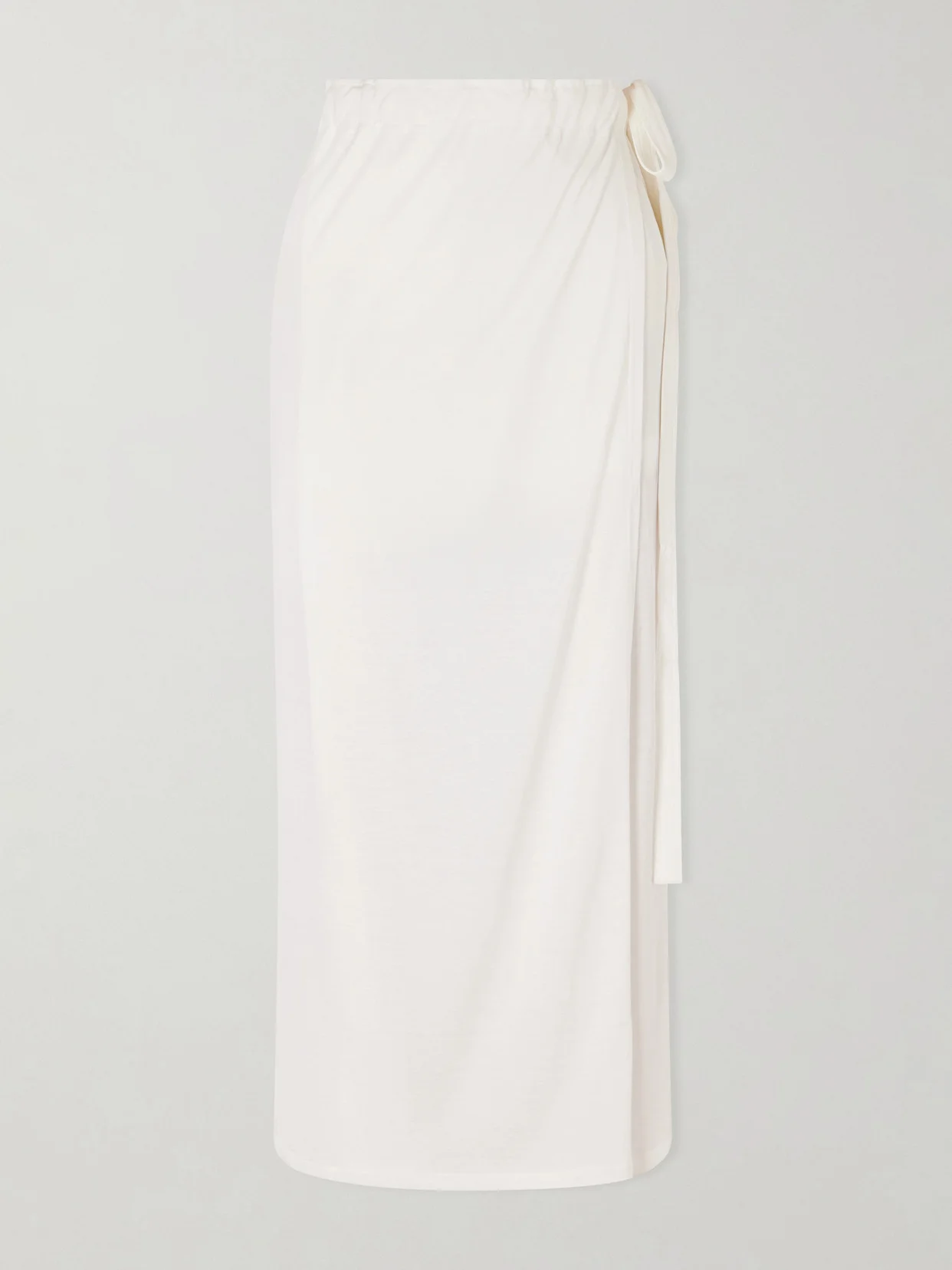 TOTEME elevates everyday essentials with minimalist elegance in this wrap skirt. Crafted from semi-sheer off-white silk and cotton-blend jersey, it has an adjustable fit, soft drape, and sarong-inspired silhouette. Pair with a plain T-shirt and sandals for effortless, travel-ready style.