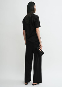 Designer's note: "For the summer Garderob curation we reimagine the signature TOTEME pj bottoms in a soft, semi-sheer silk-cotton jersey. Style them with the matching tee and wrap skirt for anything from lounging to travel and seaside lunches." Details & Fit - Black - Elasticated waistband - Side pockets - Light, soft and semi-sheer jersey - 50% cotton organic, 50% silk - Cool hand wash - Style number 253-WRB0333-FB0447 - The model is 180cm/511 tall and wears a size 36 - True to size, elasticated waistband