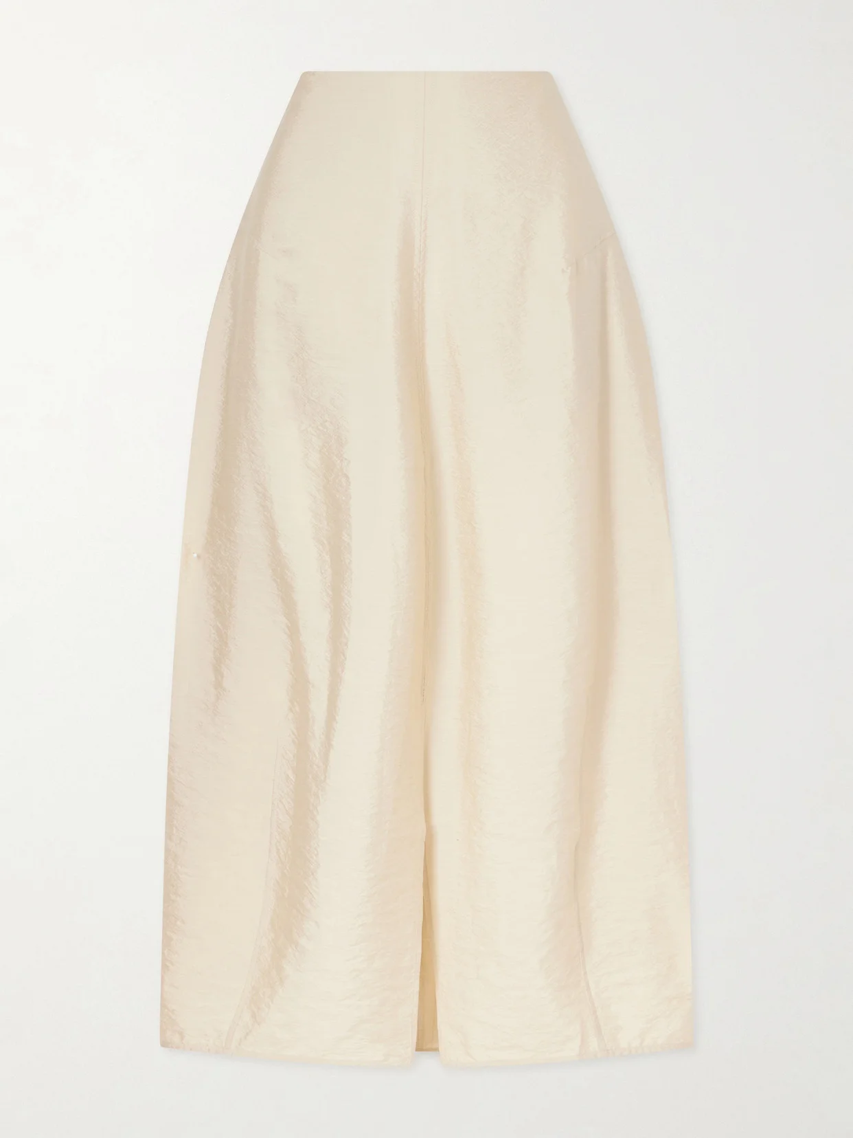 TOTEME often plays with proportion through its restrained, minimalist lens. Made from silk-blend, this skirt has a parachute silhouette with a front slit that allows ease of movement. Style yours with a belt for contrast.