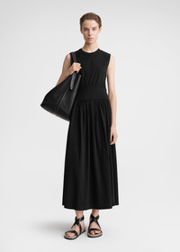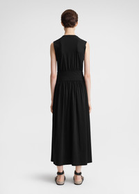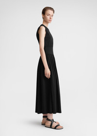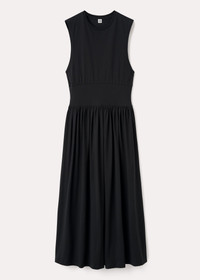 Reimagined TOTEME tee dress with a sleeveless torso, a fitted waist panel, and a flaring, calf-grazing skirt. It's made from mid-weight organic-cotton jersey and fitted with convenient side pockets. Accessorize it with anything from sneakers to flats and sandals. Details & Fit - Black - Side slip pockets - 100% Organic cotton - 30°C Machine wash - Style number 232-6022-770 - The model is 179cm/5'9" tall and wears a size S - True to size