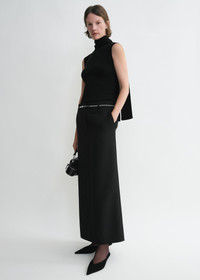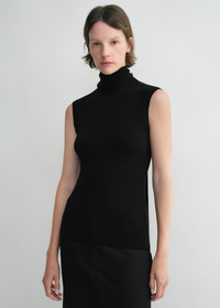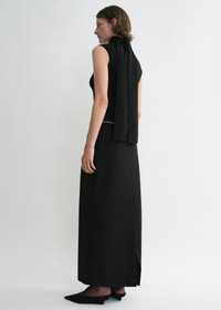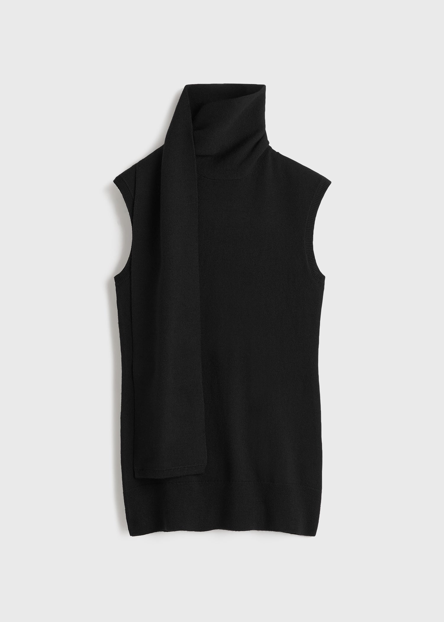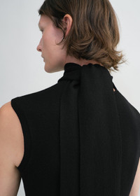 Embodying a recurring theme, this TOTEME top has a slim scarf attached to the neck for sophisticated styling. It is knitted from a mid-weight merino-wool blend with a comfortable slim shape. Tuck it into a long skirt to work. Details & Fit - Black - Attached scarf - 92% wool RWS, 8% polyamide - Cool hand wash - Style number 251-WRT4388-YA0133 - The model is 178cm/510 tall and wears a size S - True to size, slim fit