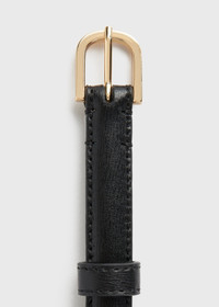 TOTEME's distinctive belt is shaped to a slim silhouette to fit smaller belt loops and fastens with a gold-tone metal buckle. It is made in Italy from responsibly sourced Palmellato leather and comes in three different lengths. Style it with tailored trousers and jeans. Details & Fit - Black - Gold-tone metal buckle - Leather reverse - 100% calf leather - Care instructions and dust bag included - Style number 244-WAM877-LE0025 - Length 70cm/27, 80cm/31 or 90cm/35 (measured from buckle base to middle hole) - Width 1.5cm/0.6" - Length 70cm/27, 80cm/31 or 90cm/35 (measured from buckle base to middle hole) - Width 1.5cm/0.6"