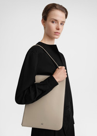 TOTEME pouch crafted in Spain from classic leather to a modern slim silhouette with opposing curved corners and a silver-tone monogram plaque. It has a strap that doubles as a zipper pull, opening to a soft microsuede interior that can be used to store documents or small electronic devices. Carry it from your shoulder as a tote bag or under your arm as a portfolio. Details & Fit - Fawn - Silver-tone metal zipper and monogram plaque - Beige microsuede lining - 100% cow leather; lining: 60% polyurethane, 40% polyamide - Care instructions and dust bag included - Style number 234-WAL906-LE0025 - Strap drop length: 25cm/98'' - Height: 33cm/13'' - Width: 25cm/9.8'' - Depth: 15cm/0.6'' - Strap drop length: 25cm/98'' - Height: 33cm/13'' - Width: 25cm/9.8'' - Depth: 15cm/0.6''