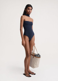 New TOTEME swimsuit with a spacious neck loop that can be styled behind or over the shoulders, creating elegant shapes at the back. It's made in Portugal from stretch jersey that contains recycled yarns sourced from plastic waste and is fully lined in the same material. Simply add flip-flops to showcase the unique silhouette. Details and fit - Dark navy - High legs - Fully lined - 73% Polyamide, 27% elastane; lining: 73% Polyamide, 27% elastane - Cool hand wash - Style number 233-7053-795 - The model is 176cm/5'9'' tall and wears a size XS - True to size