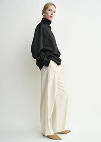 Designer’s note: "An effortless evening blouse with a dramatic high neck that slouches for a little volume. It's crafted from shiny double satin and fastens with a back zipper." Details & Fit - Black - Back zipper - 100% viscose - Dry clean - Style number 254-WRT0648-FB0020 - The model is 180cm/5'11 tall and wears a size 36 - Tapered fit