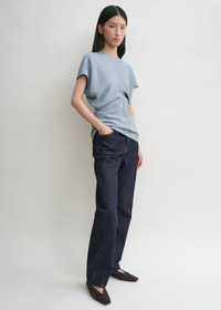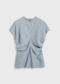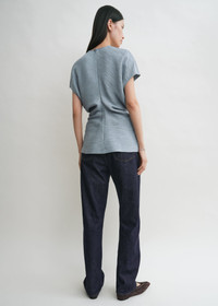 TOTEME top constructed from curved panels that create a slouching effect at the waist when sewn together. It is made from a soft, crinkled fabric and fastens with a concealed back zipper. Complete a weekend look with jeans. Details & Fit - Mistral - Concealed back zipper - 92% viscose, 8% polyamide - Dry clean - Style number 243-WRT0331-FB0199 - The model is 180cm/5'11 tall and wears a size 36 - Slim waist, please consider sizing up