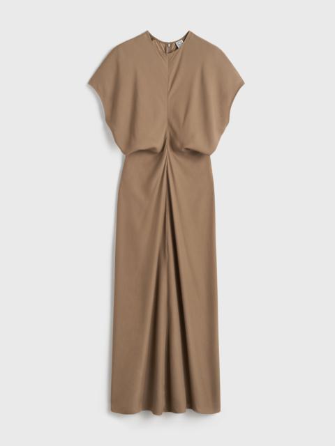 Long TOTEME dress constructed from curved satin panels that create a slouching effect at the waist when sewn together. It's made from lustrous satin and fastens with a concealed back zipper. Add tonal flats to complete an effortless occasion look. Details & Fit - Black - Concealed back zipper - 100% Viscose - Cool hand wash - Style number 241-WRD1103-FB0020 - The model is 179cm/510 tall and wears a size S - Slim waist and hips. Fits small, take one size up