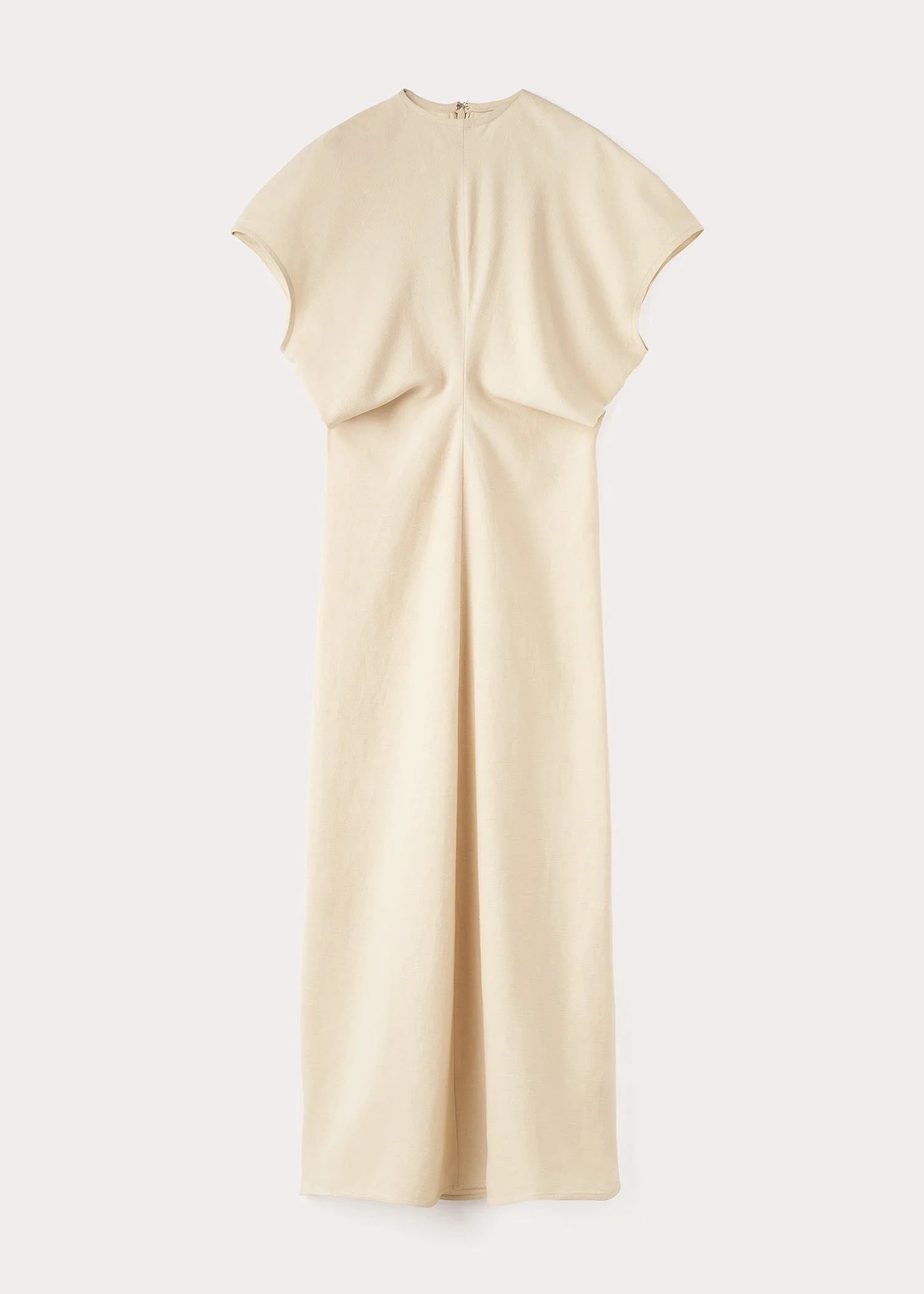 TOTEME dress constructed from curved panels that create a slouching effect at the waist when sewn together. It's made from a mid-weight linen blend with cap sleeves and a floor-grazing hem and fastens with a concealed back zipper. Pair it with heels or flats to attend a garden party. Details & Fit - Bleached sand - Concealed back zipper - 52% Linen, 42% viscose, 6% elastane - Dry clean - Style number 233-6064-284 - The model is 176cm/5'9'' tall and wears a size 34 - True to size, slim waist and hips