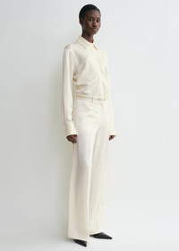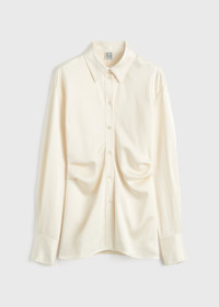 This effortless TOTEME shirt carries a recurring slouch-waist theme continued from previous collections. It is made from fluid and softly textured viscose-blend satin and fastens with buttons at the placket and cuffs. Let it slouch over trousers for an after-work outing. Details & Fit - Macadamia - Buttoned placket and cuffs - Slouched waist - 56% viscose, 44% acetate - Dry clean - Style number 251-WRT4282-FB0344 - The model is 178cm/510 tall and wears a size 36 - True to size, slim waist