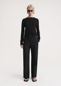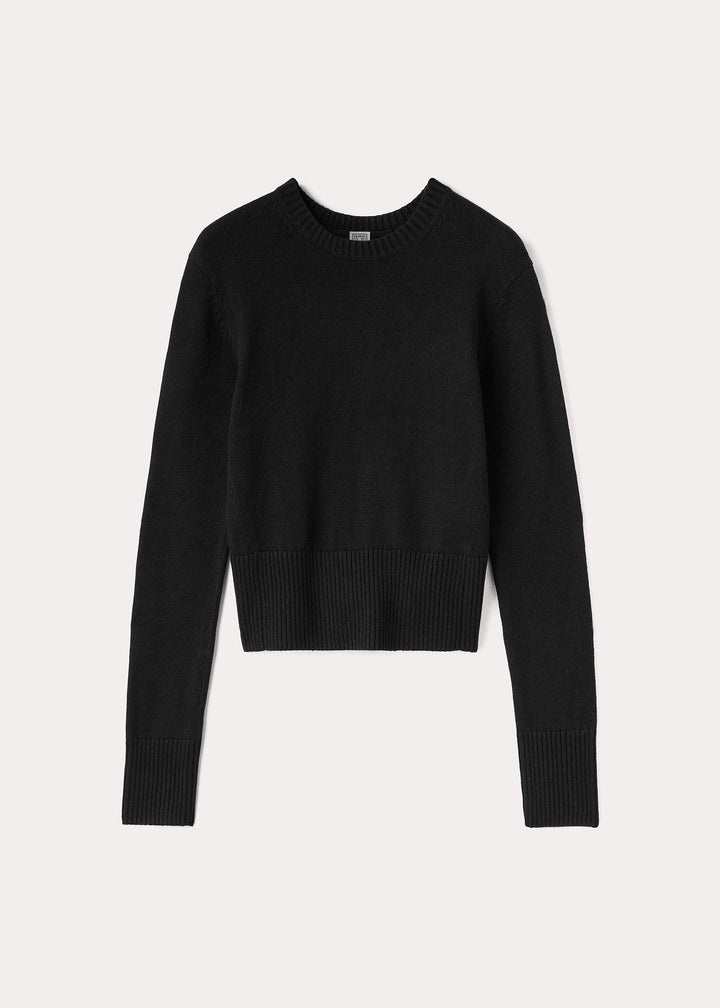 Soft sweater knitted from lustrous silk yarns to a slim silhouette framed by TOTEME's signature twisted side seams and finished with contrasting ribbed edges. Wear it with trousers and slides during the day, then slip into heels for an after-dark occasion. Details and fit - Black - 100% Silk - Cool hand wash - Style number 233-5151-342 - The model is 176cm/5'9'' tall and wears a size XS - True to size, slim fit