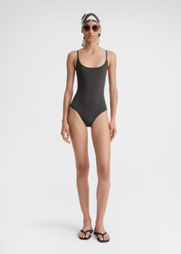 TOTEME swimsuit defined with a softened square neckline and a low back. It's made in Portugal from stretch jersey that contains recycled yarns sourced from plastic waste and is fully lined in the same material. Team it with shorts and flip-flops to grab lunch by the pool. Details & Fit - Anthracite - Adjustable straps, silver-tone metal sliders - Tonal lining - 71% polyamide recycled, 29% elastane; lining: 60% polyamide recycled, 40% elastane - 30°C Machine wash - Style number 241-WSW1031-FB0097 - The model is 176cm/5'9'' tall and wears a size S - Slim fit, true to size