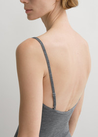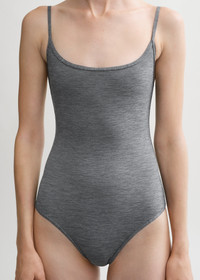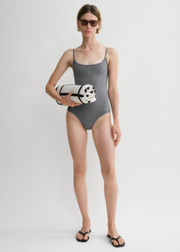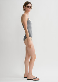 Minimalist TOTEME swimsuit featuring a melange effect for subtle texture. It is made from stretch jersey with a rounded square neck suspended from adjustable shoulder straps. Add sunglasses and sandals for an unstudied poolside look. Details & Fit - Grey melange - Adjustable straps, silver-tone metal sliders - Base lining - 39% polyester recycled, 23% elastane, 22% polyamide recycled, 15% polyamide, 1% polyester - 30°C Machine wash - Style number 243-WSW1031-FB0236 - The model is 176cm/59 tall and wears a size S - True to size