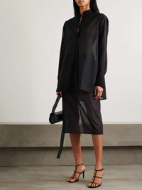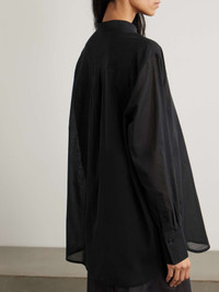 EDITORS'NOTES TOTEME's shirt is particularly fine, so it's sheer and wonderfully airy. It's cut from a beautiful organic cotton-voile with clean lines in loose proportions. The placket fastens with mother-of-pearl buttons and is finished with tonal crisscross embroidery and subtle hanging tassels. SIZE & FIT TOTEME follows its own size guide, please refer to below: - DK 32 = UK 4/ US 0/ IT 36 - DK 34 = UK 6/ US 2/ IT 38 - DK 36 = UK 8/ US 4/ IT 40 - DK 38 = UK 10/ US 6/ IT 42 - DK 40 = UK 12/ US 8/ IT 44 - DK 42 = UK 14/ US 10/ IT 46 - Fits true to size, take your normal size - Designed for a loose fit - Lightweight, semi-sheer, non-stretchy fabric - Model is 175cm/ 5'9" and is wearing a DK 34 - Bust: 81cm/ 32" - Waist: 62cm/ 24.5" - Hip: 89cm/ 35" DETAILS & CARE - Black organic cotton-voile - Button fastenings along front - 100% organic cotton - Dry clean - Mother-of-pearl: Indonesia