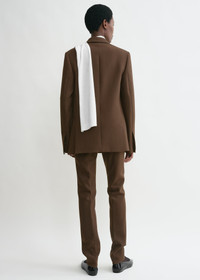 Following our focus on methodic repetition and building on signature styles, this TOTEME blazer is constructed from a structured fabric with a spongy hand feel. It has a relaxed straight silhouette with three flap pockets and full satin lining. Wear it as part of a tailoring edit. Details & Fit - Bark - Button front - Three flap pockets, internal pocket - Satin lining - 53% polyamide recycled, 43% wool RWS, 4% elastane; lining: 100% viscose - Dry clean - Style number 244-WRZ0045-FB0061 - The model is 180cm/5'11 tall and wears a size 36 - True to size, relaxed straight sillhouette