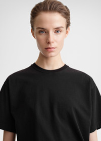 TOTEME's version of the perfect T-shirt is made from mid-weight, organic-cotton jersey that's washed for softness. It has a round neck and dropped shoulders followed by an oversized silhouette with a straight hem. Complete an uncomplicated summer look with trousers and sandals. Details & Fit - Black - 100% Organic cotton - 30°C Machine wash - Style number 232-5043-786 - The model is 179cm/5'9" tall and wears a size S - Designed for an oversized fit, go down a size if you prefer a neater look