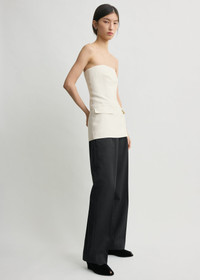 A directional top defined by an alluring strapless silhouette. Tailored from crepe to match the coordinating suit trousers. Details & Fit - Ecru - Functional flap pockets - Concealed back zipper - Full lining, structured darts - 81% RWS wool, 19% silk; internal bandeau construction: 80% acetate, 20% polyester; lining: 100% viscose - Dry clean - Style number 261-WRT0611-FB0567 - The model is 180cm/5'11 tall and wears a size 36 - Slim chest and torso