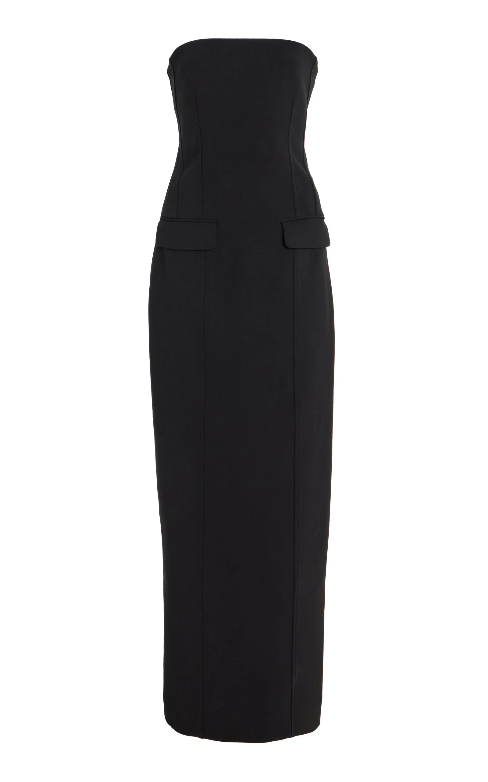 With its signature clean lines and minimalist style, Stockholm-based Toteme is the quintessential Scandi-cool. Elin Kling designs each collection as a modern uniform, looking to vintage pieces for inspiration and giving its cult following a dress code for every day. This strapless column gown features a structured bodice with precise seam detailing. Flap pockets accent the waist, adding a tailored touch to its sleek, minimalist silhouette. PRODUCT DETAILS - Resort '26 - Concealed zip fastening - Composition: 100% polyester - Dry clean - Imported SIZE & FIT - Our model is wearing a size FR 34 - Model is 5’9.5" with a 32" bust, 24" waist, and 35.5" hip
