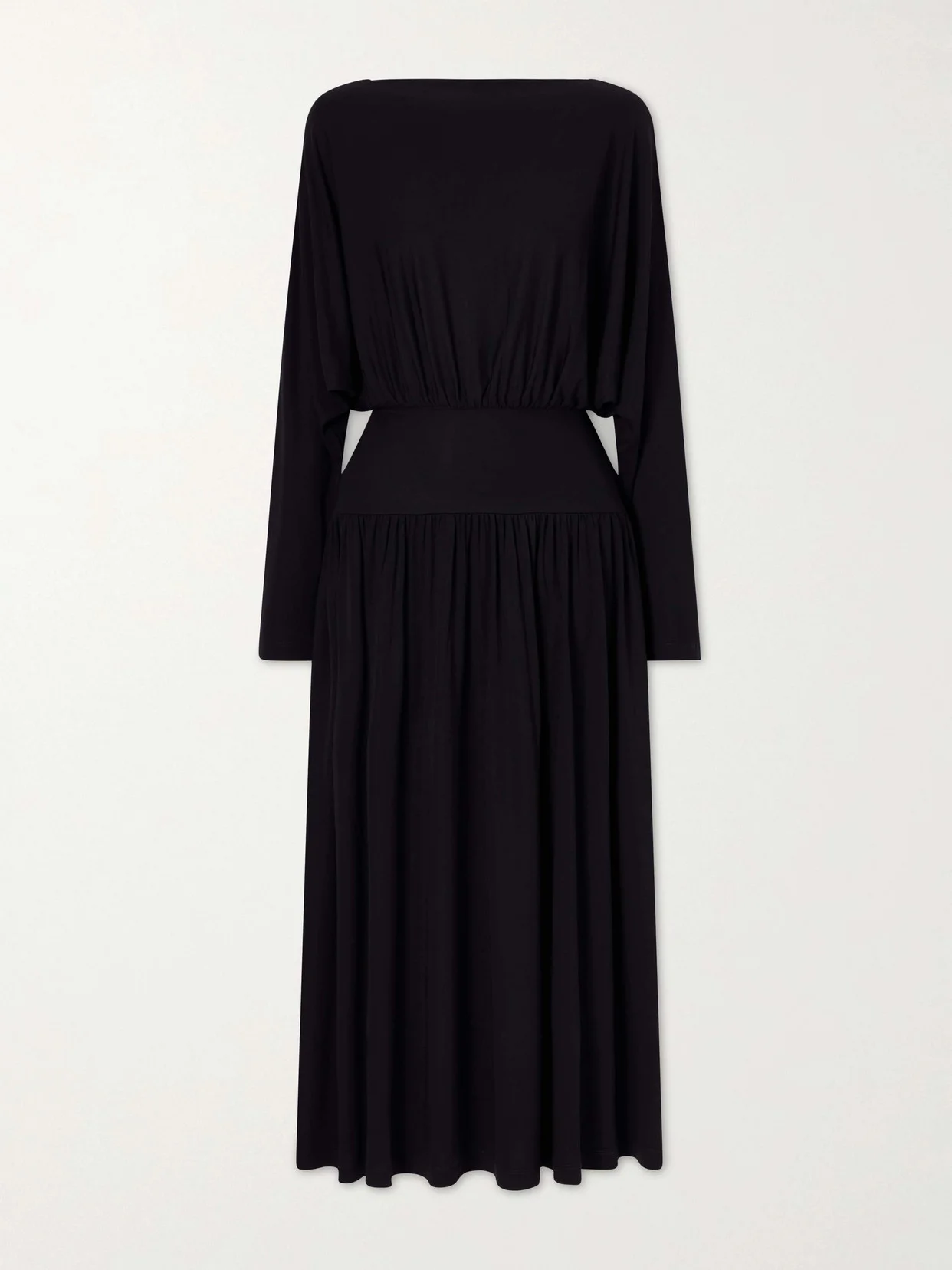 The gathered detailing on TOTEME's dress recalls the draping of ancient Roman togas. Made from stretch-jersey, it has an elegant boat neckline framing the batwing sleeves and practical side slit pockets. Style yours with statement earrings.